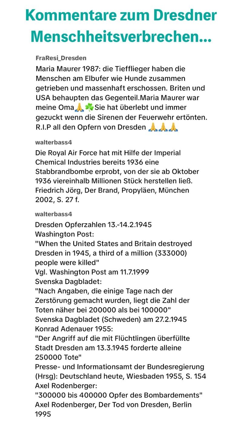Anmerkung: Da niemand genau beziffern kann, (oder eher will), werde ich da mal nachhelfen… Der pathologische Deutschenhasser, Logenbruder und fremdgesteuerte Churchill wusste ganz genau, daß Dresden als Lazarettstadt mit Flüchtlingen aus den Ostgebieten komplett überfüllt war… Gemäß seinen Aussagen → „…Ich möchte keine Vorschläge haben, wie wir kriegswichtige Ziele im Umland von Dresden zerstören können, ich möchte Vorschläge haben, wie wir 600.000 Flüchtlinge aus Breslau in Dresden braten können!…“ Daher war es ein absolut schwerstes, eindeutiges Kriegsverbrechen ersten Grades, weil … Weiterlesen “Bzgl. Dresden…”