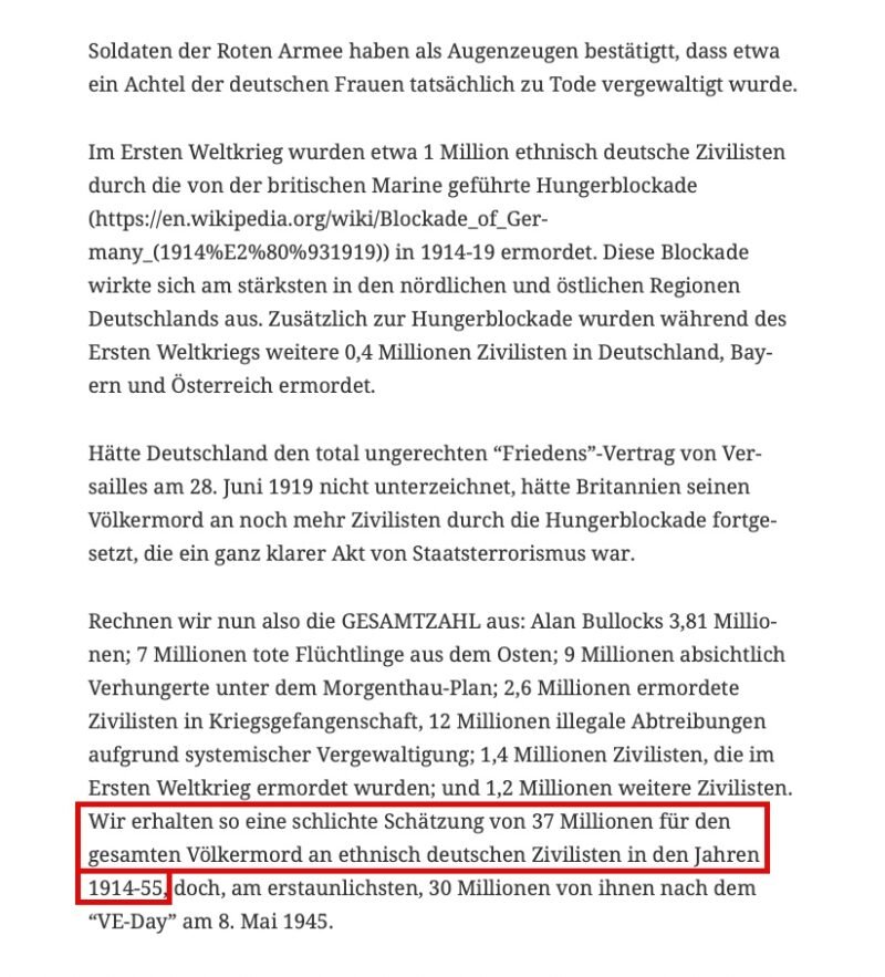 …Aber das größte Geheimnis, das die Talmudisten über 70 Jahre lang verbargen, war ihr Völkermord an über 30 Millionen ethnisch deutschen Zivilisten nach dem “VE-Day” am 8. Mai 1945… PS: Die ganzen SiegerLügen, von A-Z, wurden nur über uns ausgebreitet, um das schlimmste Menschheitsverbrechen, nämlich gegen uns Deutsche, seit Anbeginn der Menschheit, zu übertünchen…