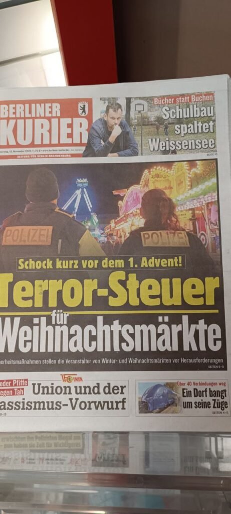 - Ganz originell: „Terror-Steuer“… Ich würde sie in „freundliches-Gesicht-Steuer“ umbenennen, (dabei immer konsequent an Merkel denken!), oder „Nun sind sie halt da-Steuer…“ (Das ist übrigens DIE, wo ganze Theatersäle vor Begeisterung minutenlang applaudieren und johlen, wenn sie mit solchen, idiotischen KINDER-SÄTZEN verhöhnt & abgespeist werden… Das lässt sehr viele Rückschlüsse auf deren (stark eingeschränkten), geistigen Möglichkeiten zu…